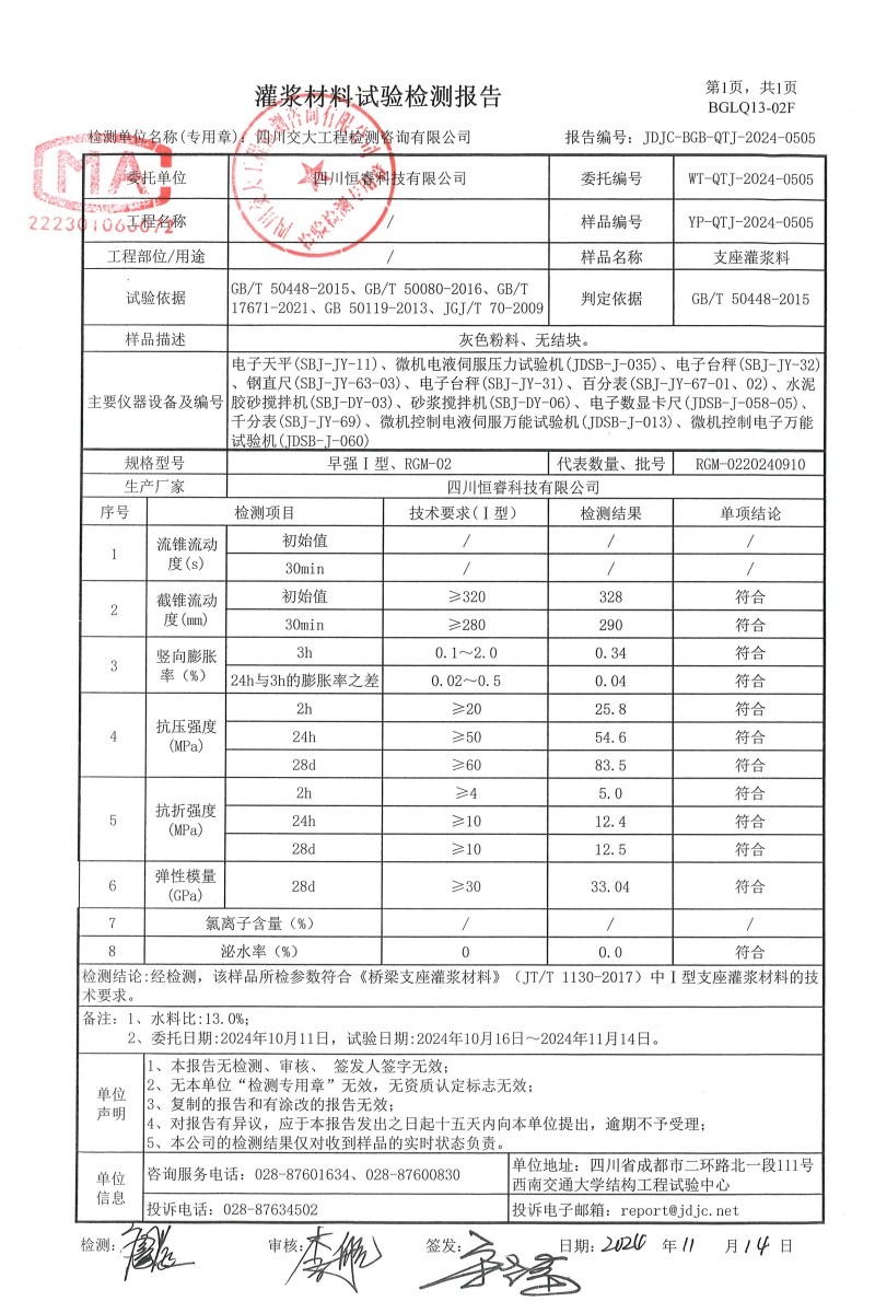 四川恒??萍加邢薰?/strong>成立于2017年11月13日,注冊資金1180萬元,是一家專業 生產銷售特種加固水泥基、聚合物砂漿材料、混凝土外加劑的高科技實體企業。其位置座落在美麗的蓉城青羊區,地理位十分優越、交通便利。